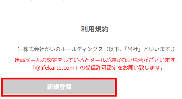利用規約に同意されたお客様のみ「新規登録」ボタンを押してください。