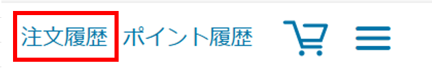 ログインしている状態で、画面上部の「注文履歴」を押すか、