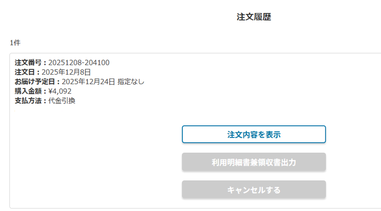 過去に注文した履歴の一覧が表示されます。