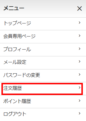 メニューバー>注文履歴を押します。