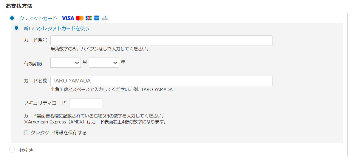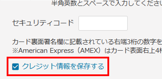 ログインしている場合のみ、初めて使用したクレジットカードの場合はクレジットカードを情報を保存することができます。